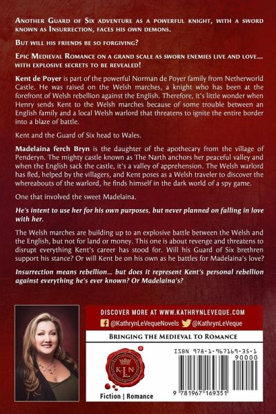 Another Guard of Six adventure as a powerful knight, with a sword known as Insurrection, faces his own demons. But will his friends be so forgiving? Epic Medieval Romance on a grand scale as sworn enemies live and love... with explosive secrets to be revealed! Kent de Poyer is part of the powerful Norman de Poyer family from Netherworld Castle. He was raised on the Welsh marches, a knight who has been at the forefront of Welsh rebellion against the English. Therefore, it's little wonder when Henry sends Kent to the Welsh marches because of some trouble between an English family and a local Welsh warlord that threatens to ignite the entire border into a blaze of battle. Kent and the Guard of Six head to Wales. Madelaina ferch Bryn is the daughter of the apothecary from the village of Penderyn. The mighty castle known as The Narth anchors her peaceful valley and when the English sack the castle, it's a valley of apprehension. The Welsh warlord has fled, helped by the villagers, and Kent poses as a Welsh traveler to discover the whereabouts of the warlord, he finds himself in the dark world of a spy game. One that involved the sweet Madelaina. He's intent to use her for his own purposes, but never planned on falling in love with her. The Welsh marches are building up to an explosive battle between the Welsh and the English, but not for land or money. This one is about revenge and threatens to disrupt everything Kent's career has stood for. Will his Guard of Six brethren support his stance? Or will Kent be on his own as he battles for Madelaina's love? Insurrection means rebellion... but does it represent Kent's personal rebellion against everything he's ever known? Or Madelaina's?