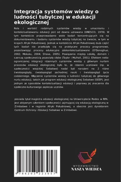 Rola i warto¿¿ rodzimych systemów wiedzy w umacnianiu i kontekstualizowaniu edukacji jest od dawna uznawana (UNESCO, 1978). W tym kontek¿cie przeprowadzono wiele badä koncentruj¿cych si¿ na dokumentowaniu i badaniu systemów wiedzy tubylczej na ¿wiecie, w tym w krajach Afryki Po¿udniowej. Jednak w kontek¿cie Afryki Po¿udniowej du¿a cz¿¿¿ tych badä nie prze¿o¿y¿a si¿ na praktyczne procesy programowe, pozostawiaj¿c procesy edukacyjne zdekontekstualizowane (O'Donoghue, 2002; Mokuku, 2004; Shava, 2005). Powi¿zania mi¿dzy szko¿¿, domem i szersz¿ spo¿eczno¿ci¿ pozostäy s¿abe (Taylor i Mulhall, 2001). Efektem netto ograniczonej integracji rdzennych systemów wiedzy z g¿ównym nurtem procesów edukacji ekologicznej by¿o to, ¿e rdzenni uczniowie (np. w spo¿eczno¿ci wiejskiej Sebakwe) nadal byli naräeni na 2 ró¿ne ¿wiatopogl¿dy, ¿wiatopogl¿d zachodniej nauki i ¿wiatopogl¿d ¿ycia codziennego. W¿¿czenie systemów wiedzy o ludno¿ci tubylczej do g¿ównego nurtu edukacji, takich jak program edukacji ekologicznej Sebakwe (SEEP), jest jednym ze sposobów kontekstualizacji edukacji i poprawy jej znaczenia dla spo¿eczno-kulturowego zaplecza uczniów.