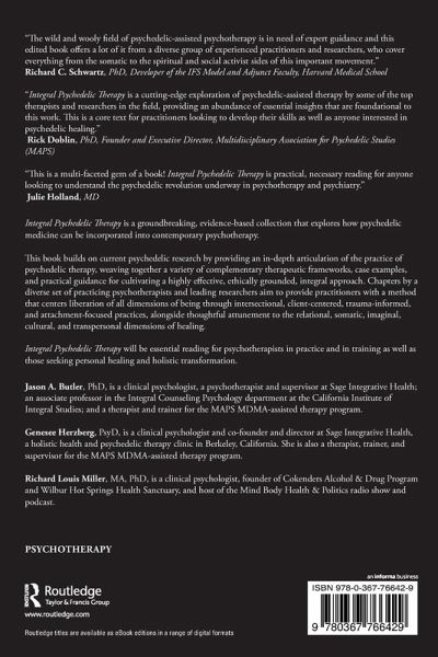 "Integral Psychedelic Therapy brings needed attention and wisdom to a range of the most important aspects of working with psychedelics. At a time of rapid progress in clinical research, this book is a welcome reminder of the cultural context surrounding these medicines, including the history of psychedelics, the debt owed to indigenous wisdom and the tragic damage the "War on Drugs" has done to marginalized communities and to the advancement of health care and individual freedom. The more clinically oriented chapters remind us not to lose sight of the "core, human elements of the work" and the richness and depth of the human healing process. The authors draw on their own clinical experience to offer informed and insightful discussions of ethics and consent, therapeutic relationship, safe and mindful physical touch, music, the multiplicity of the psyche, numinous mystical experience, psychedelic group therapy and the immense importance of integration following psychedelic experiences. Case examples bring these discussions to life. This is a valuable resource for therapists and anyone else interested in psychedelics." - Michael Mithoefer, MD, Senior Medical Director for Medical Affairs, Training and Supervision, MAPS Public Benefit Corp.