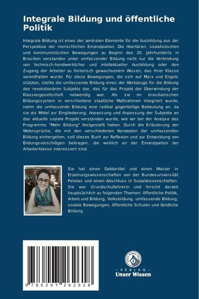 Integrale Bildung ist eines der zentralen Elemente für die Ausbildung aus der Perspektive der menschlichen Emanzipation. Die libertären, sozialistischen und kommunistischen Bewegungen zu Beginn des 20. Jahrhunderts in Brasilien verstanden unter umfassender Bildung nicht nur die Verbindung von technisch-handwerklicher und intellektueller Ausbildung oder den Zugang der Arbeiter zu historisch gewachsenem Wissen, das ihrer Klasse vorenthalten wurde. Für diese Bewegungen, die sich auf Marx und Engels stützten, stellte die umfassende Bildung eines der Werkzeuge für die Bildung des revolutionären Subjekts dar, das für das Projekt der Überwindung der Klassengesellschaft notwendig war. Als sie im brasilianischen Bildungssystem in verschiedene staatliche Maßnahmen integriert wurde, nahm die umfassende Bildung eine radikal gegenteilige Bedeutung an, da sie als Mittel zur Eingliederung, Anpassung und Anpassung der Subjekte an das aktuelle soziale Projekt verstanden wurde, wie wir bei der Analyse des Programms "Mehr Bildung" festgestellt haben. Durch die Erläuterung der Widersprüche, die mit den verschiedenen Konzepten der umfassenden Bildung einhergehen, soll dieses Buch zur Reflexion und zur Entwicklung von Bildungsvorschlägen beitragen, die wirklich an der Emanzipation der Arbeiterklasse interessiert sind.