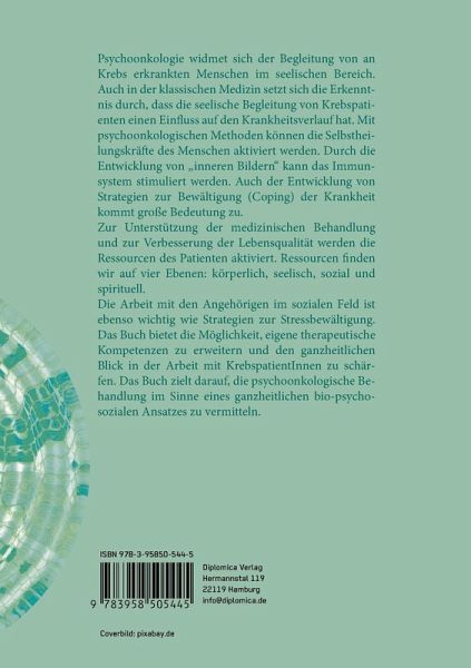Die Arbeit mit den Angehörigen im sozialen Feld ist ebenso wichtig wie Strategien zur Stressbewältigung. Das Buch bietet die Möglichkeit, eigene therapeutische Kompetenzen zu erweitern und den ganzheitlichen Blick in der Arbeit mit KrebspatientInnen zu schärfen. Das Buch zielt darauf, die psychoonkologische Behandlung im Sinne eines ganzheitlichen bio-psycho-sozialen Ansatzes zu vermitteln.