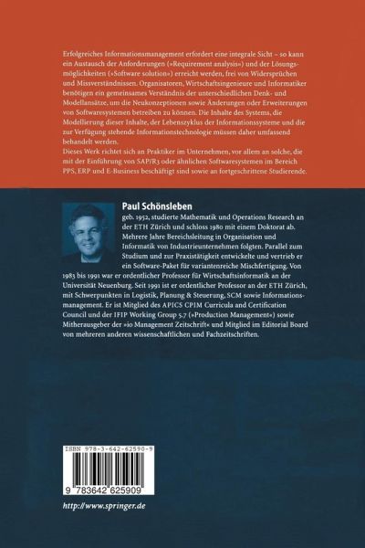 Erfolgreiches Informationsmanagement, bei Einführung von Software-Systemen im Bereich ERP oder PPS, auch im Falle von Änderungen und Erweiterungen, erfordert eine integrale Sicht: Die Inhalte, die Modellierung dieser Inhalte, der Lebenszyklus der Informationssysteme, und die zur Verfügung stehende Informationstechnologie werden umfassend behandelt. Die zweite Auflage richtet sich an Praktiker im Unternehmen, vor allem an solche, die mit der Einführung von SAP/R3 oder ähnlichen Softwaresystemen im Bereich PPS, ERP und E-Business beschäftigt sind und für eine grundsätzliche Einordnung der Teilaufgaben eine Gesamtdarstellung suchen. Daher ist das Buch auch für die Aus- und Weiterbildung geeignet, für Wirtschaftsinformatiker, Wirtschaftsingenieure, Ingenieure oder Informatiker an universitären Hochschulen und Fachhochschulen sowie Ausbildungsstätten zur beruflichen Weiterbildung.