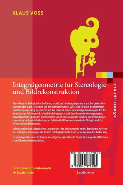 Das vorliegende Buch gibt eine Einführung in die klassische Integralgeometrie und ihre praktischen Anwendungen in der Stereologie und der Bildrekonstruktion. Daher wird vor allem die elementare zweidimensionale Integralgeometrie und ihre praktisch bedeutsame Verallgemeinerung auf den dreidimensionalen Fall vorgestellt. Inhaltliche Schwerpunkte sind: Grundlagen der Konvexgeometrie, Integralgeometrie und Radon-Transformation. Zahlreiche anschauliche Beispiele und Anwendungen zeigen die grundlegende Bedeutung des Gebietes für Bildauswertungen in der Biologie, Medizin, Petrographie und Metallurgie.
