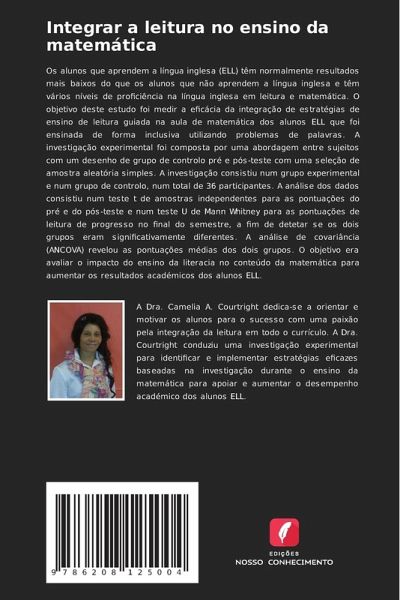 Os alunos que aprendem a língua inglesa (ELL) têm normalmente resultados mais baixos do que os alunos que não aprendem a língua inglesa e têm vários níveis de proficiência na língua inglesa em leitura e matemática. O objetivo deste estudo foi medir a eficácia da integração de estratégias de ensino de leitura guiada na aula de matemática dos alunos ELL que foi ensinada de forma inclusiva utilizando problemas de palavras. A investigação experimental foi composta por uma abordagem entre sujeitos com um desenho de grupo de controlo pré e pós-teste com uma seleção de amostra aleatória simples. A investigação consistiu num grupo experimental e num grupo de controlo, num total de 36 participantes. A análise dos dados consistiu num teste t de amostras independentes para as pontuações do pré e do pós-teste e num teste U de Mann Whitney para as pontuações de leitura de progresso no final do semestre, a fim de detetar se os dois grupos eram significativamente diferentes. A análise de covariância (ANCOVA) revelou as pontuações médias dos dois grupos. O objetivo era avaliar o impacto do ensino da literacia no conteúdo da matemática para aumentar os resultados académicos dos alunos ELL.