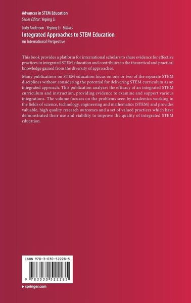 1. Introduction; Judy Anderson and Yeping Li.- Section 1 Approaches to STEM Integration.- 2. STEM Education for the 21st Century; Russell Tytler.- 3. Facilitating STEM Integration through Design; Lyn English.- 4. A Review of Conceptions of Mathematics in Integrated STEM Education; Erin E. Baldinger, Sue Staats, Lesa M. Covington-Clarkson, Elena Gullickson, Fawnda Norman, and Bismark Akoto.- 5. What is the Role of Statistics in Integrating STEM Education? Jane Watson, Noleine Fitzallen, and Helen Chick.- 6. STEM and Numeracy in the Australian Curriculum; Anne Bennison and Vince Geiger.- 7. Investigating the epistemic nature of STEM: Analysis of curriculum documents from the USA using the Family Resemblance Approach; Wonyong Park, Jen-Yi Wu and Sibel Erduran.- 8. Using a proposed Integrated STEM Framework for Designing Lessons in the Singaporean Context; Tang Wee Teo, Aik-Ling Tan, & Kuang Wen Chan.- 9. Approaches to effecting an integrated STEM education in Southern Africa; Judah Makonye and Reuben Dlamini.- Section 2 Designing Integrated STEM Approaches for Students.- 10. Connecting mathematics and science in a US elementary classroom: Investigating computational thinking and the particle nature of matter through project based learning; Emily Miller, Samuel Severance and Joe Krajcik.- 11. Developing US elementary students' STEM practices and concepts in an after school integrated STEM project; Sasha Wang, Steve Swanson, Yuhui Ching, Youngkyun Baek, Dazhi Yang, and Bhaskar Chittoori.- 12. Student STEM beliefs in the UK: how they shift and are shaped by transdisciplinary projects; Karen Skilling.- 13. Climate change and students' critical competences: A Norwegian study; Lisa Steffensen.- 14. Incorporating Mathematical Thinking into High School STEM Physics - A CaseStudy in the USA; Israel Touitou and Joe Krajcik.- 15. The Next Generation of STEM Education in Asia: Collaborative curriculum design in Taiwan, Thailand and Vietnam; Chun-Yen Chang and Pei-Ling Lin.- 16. STEM skill assessment of student learning: An application for Adaptive Comparative Judgment; Scott R. Bartholomew and P. John Williams.- Section 3 Implementing Integrated STEM Approaches in Preservice Teacher Education.- 17. Missing Coherence in STEM Education: Creating Design Based Pedagogical Content Knowledge (DPCK) in Turkish Preservice education; Ibrahim Delan, Consuelo Morales and Joe Krajcik.- 18. Promoting a learning scenario for an integrated approach to STEM: prospective teachers' perspectives in Portugal; Ana Henriques, Hélia Oliveira, and Mónica Baptista.- 19. Increasing Pre-Service Teachers' Engagement with STEM Learning in Australia; Duncan Symons and Joanne Blannin.- Section 4 Implementing Integrated STEM Approaches in Teacher Professional Development.- 20. Designing and evaluating an integrated STEM professional development program for secondary and primary school teachers in Australia; Judy Anderson and Debbie Tully.- 21. Argumentation in primary grades STEM instruction: Examining teachers' beliefs and practices in the USA; AnnaMarie Conner, Barbara Crawford, Timothy Foutz, Roger B. Hill, David F. Jackson, ChanMin Kim, and Sidney A. Thompson.- 22. Integrated STEM Education in Virginia, USA: CodeVirginia K-5 Coaches Academy; Anita Crowder, Rebecca Dovi and David Naff.- 23. Promoting Integrated STEM Tasks in the Framework of Teachers' Professional Development in Portugal; Maria Cristina Costa, António Domingos and Vítor Teodoro.- 24. Integrated STEM in Australian Public Schools: Opening up Possibilities for Classrooms and Effective Teacher Professional Development; Jane Hunter.- Section 5 Future Directions.- 25. If Integrated STEM Education is the Solution, how do we get there? Author to be identified.