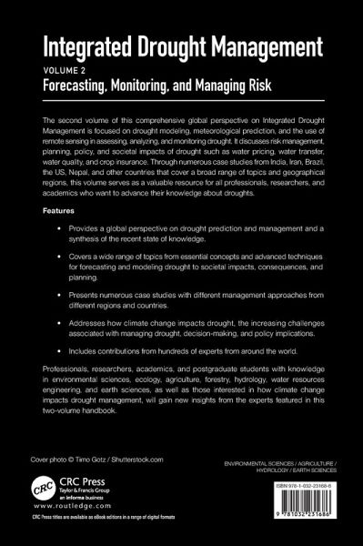 The second volume of this comprehensive global perspective on Integrated Drought Management is focused on drought modeling, meteorological prediction, and the use of remote sensing in assessing, analyzing, and monitoring drought. It discusses risk management, planning, policy, and societal impacts of drought.