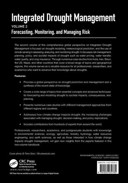 The second volume of this comprehensive global perspective on Integrated Drought Management is focused on drought modeling, meteorological prediction, and the use of remote sensing in assessing, analyzing, and monitoring drought. It discusses risk management, planning, policy, and societal impacts of drought.