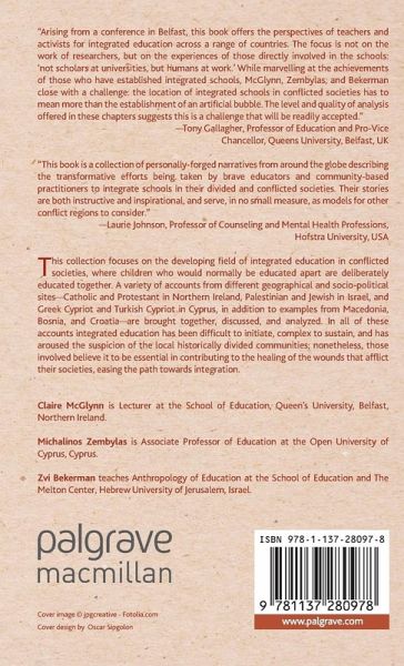 General Introduction: Zvi Bekerman and Michalinos Zembylas PART I: LEADERSHIP OF INTEGRATED EDUCATION 1. The Magic of Millennium: A milestone towards peace in Northern Ireland; Mary Roulston 2. The Integrated Education Fund in Northern Ireland; Paul Caskey 3. Changing our Reality: The integrated -Arabic- Hebrew- bilingual education in Israel; Inas Deeb and Nadia Kinani 4. On the Peace Line: The experience of an integrated school; Noreen Campbell 5. Interethnic Dialogue and Cooperation for Integrated Education in BiH: The practice and experience of the Nansen Dialogue Center Sarajevo; Ljuljjeta Goranci-Brkic PART II: STARTING INTEGRATED SCHOOLS AND TRANSFORMATION OF EXISTING SCHOOLS IN CONFLICTED SOCIETIES 6. All-ability Education in Northern Ireland: A principal's perspective; Kevin Lambe 7. Two Steps Forward and One Step Back: A journey to creating an integrated school in Cyprus; Maria Asvesta 8. Priory Integrated College: A transformed integrated college - a college transformed; Peter McCreadie 9. Building Bridges at the Earliest Age through Mozaik: Model for multicultural preschool education in Macedonia; Vilma Venkovska Milcev 10. Integrated Education in the Republic of Macedonia: Challenges for teachers; Biljana Krstevska and Veton Zekolli PART III: CURRICULUM AND PEDAGOGY ISSUES IN INTEGRATED SCHOOLS 11. A Practitioner's Reflections on Schooling in Bilingual Integrated Contexts; Julia Salman 12. Challenges of Education for Peace in Segregated Schools in Vukovar; Marinko Uremovic and Ivana Milas 13. Exploring Controversial Issues together in Northern Ireland: A view from Lagan College chaplainacy; Helen Killick and Sharon Verwoerd 14. Embedding Integration through the Anti-bias Curriculum; Paula McIlwaine 15. Khalil, Khalil and Khalil; Bob Mark PART IV: MOVING FORWARDS- DEVELOPING AND SUSTAINING SUPPORT FOR INTEGRATED SCHOOLS 16. My Experience of Integrated Education in Northern Ireland; Richard Wilson Chapter 17: Thirty Years to Achieve Seven Percent:Working to desegregate the school in Northern Ireland; Colm Cavanagh General Conclusion: Michalinos Zembylas and Zvi Bekerman