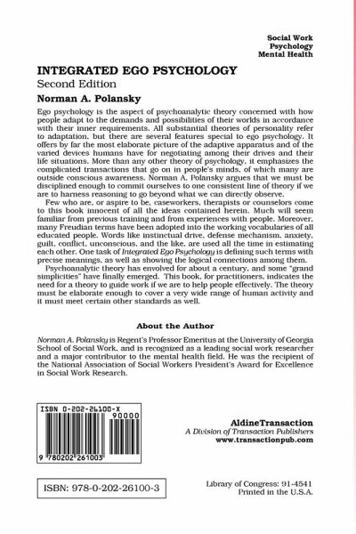 Ego psychology is the aspect of psychoanalytic theory concerned with how people adapt to the demands and possibilities of their worlds in accordance with their inner requirements. All substantial theories of personality refer to adaptation, but there are several features special to ego psychology. It offers by far the most elaborate picture of the adaptive apparatus and of the varied devices humans have for negotiating among their drives and their life situations. More than any other theory of psychology, it emphasizes the complicated transactions that go on in people's minds, of which many are outside conscious awareness. Norman A. Polansky argues that we must be disciplined enough to commit ourselves to one consistent line of theory if we are to harness reasoning to go beyond what we can directly observe. Few who are, or aspire to be, caseworkers, therapists or counselors come to this book innocent of all the ideas contained herein. Much will seem familiar from previous training and from experiences with people. Moreover, many Freudian terms have been adopted into the working vocabularies of all educated people. Words like instinctual drive, defense mechanism, anxiety, guilt, conflict, unconscious, and the like, are used all the time in estimating each other. One task of Integrated Ego Psychology is defining such terms with precise meanings, as well as showing the logical connections among them. Psychoanalytic theory has envolved for about a century, and some "grand simplicities" have finally emerged. This book, for practitioners, indicates the need for a theory to guide work if we are to help people effectively. The theory must be elaborate enough to cover a very wide range of human activity and it must meet certain other standards as well.