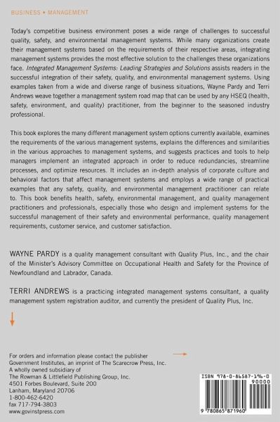 Integrating management systems provides the most effective solution to the challenges that today's organizations face. This book explores the many different management system options currently available, examines the requirements of the various management systems, explains the differences and similarities in the various approaches to management systems, and suggests practices and tools to help managers implement an integrated approach in order to reduce redundancies, streamline processes, and optimize resources.