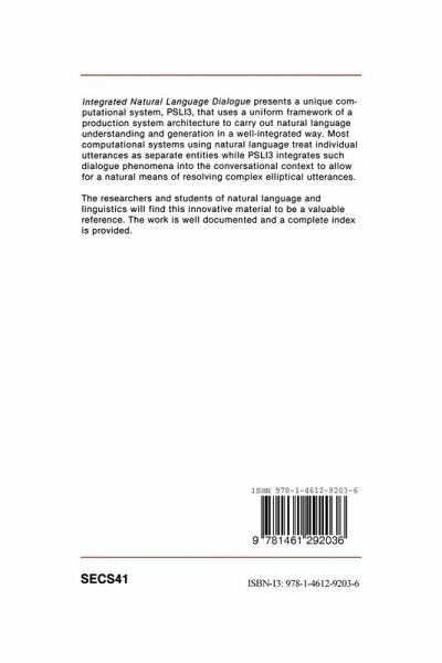 Natural language dialogue is a continuous, unified phenomenon. Speakers use their conversational context to simplify individual utterances through a number of linguistic devices, including ellipsis and definite references. Yet most computational systems for using natural language treat individual utterances as separate entities, and have distinctly separate processes for handling ellipsis, definite references, and other dialogue phenomena. This book, a slightly revised version of the Ph. D. dissertation that I completed in December 1986, describes a different approach. It presents a computational system, Psli3, that uses the uniform framework of a production system architecture to carry out natural language understanding and generation in a well-integrated way. This is demonstrated primarily through intersentential ellipsis resolution, in addition to examples of definite reference resolution and interactive error correction. The system's conversational context arises naturally asthe result of the persistence of the internal representations of previous utterances in working memory. Natural language input is interpreted within this framework using a modification of the syntactic technique of chart parsing, extended to include semantics, and adapted to the production system architecture. This technique, called semantic chart parsing, provides a graceful way of handling ambiguity within this architecture, and allows separate knowledge sources to interact smoothly across different utterances in a highly integrated fashion. xvi Integrated Natural Language Dialogue The design of this system demonstrates how flexible and natural user interactions can be carried out using a system with a naturally flexible control structure.