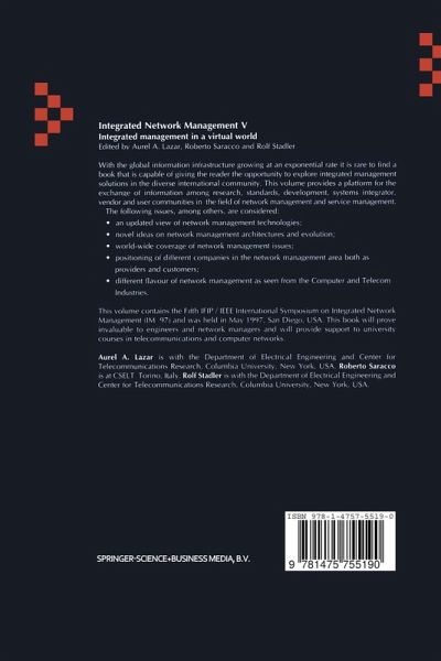 This volume contains the Fifth IFIP/IEEE International Symposium on Integrated Network Management (ISINM `97) and held in May 1997, San Diego, USA. This book will prove invaluable to engineers and network managers; and as support to university courses in Telecommunications and Computer Networks.Welcome to IM'97! We hope you had the opportunity to attend the Conference in beautiful San Diego. If that was the case, you will want to get back to these proceedings for further read ings and reflections. You'll find e-mail addresses of the main author of each paper, and you are surely encouraged to get in touch for further discussions. You can also take advantage of the CNOM (Committee on Network Operation and Management) web site where a virtual discus sion agora has been set up for IM'97 (URL: At this site you will find a brief summary of discussions that took place in the various panels, and slides that accompanied some of the presentations--all courtesy of the participants. If you have not been to the Conference, leafing through these proceedings may give you food for thought. Hopefully, you will also be joining the virtual world on the web for discussions with authors and others who were at the Conference. At IM'97 the two worlds of computer networks and telecommunications systems came to gether, each proposing a view to management that stems from their own paradigms. Each world made clear the need for end-to-end management and, therefore, each one stepped into the oth er's field. We feel that there is no winner but a mutual enrichment. The time is ripe for integra tion and it is likely that the next Conference will bear its fruit.