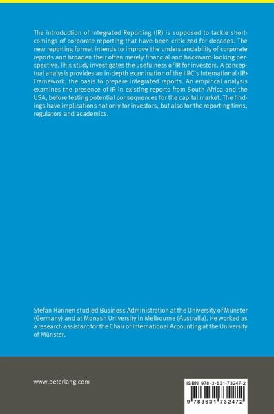 The introduction of Integrated Reporting (IR) is supposed to tackle shortcomings of corporate reporting that have been criticized for decades. The new reporting format intends to improve the understandability of corporate reports and broaden their often merely financial and backward-looking perspective. This study investigates the usefulness of IR for investors. A conceptual analysis provides an in-depth examination of the IIRC's International Framework, the basis to prepare integrated reports. An empirical analysis examines the presence of IR in existing reports from South Africa and the USA, before testing potential consequences for the capital market. The findings have implications not only for investors, but also for the reporting firms, regulators and academics.