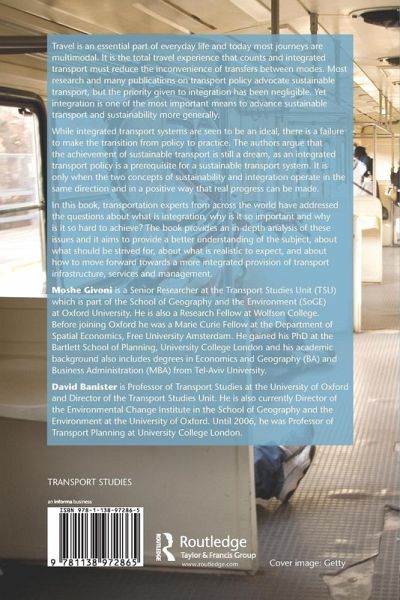 Travel is an essential part of everyday life and today most journeys are multimodal.¿ It is the total travel experience that counts and integrated transport must reduce the inconvenience of transfers between modes.¿ Most research and many publications on transport policy advocate sustainable transport, but the priority given to integration has been negligible.¿ Yet integration is one of the most important means to advance sustainable transport and sustainability more generally. While integrated transport systems are seen to be an ideal, there is a failure to make the transition from policy to practice. The authors argue that the achievement of sustainable transport is still a dream, as an integrated transport policy is a prerequisite for a sustainable transport system. It is only when the two concepts of sustainability and integration operate in the same direction and in a positive way that real progress can be made. In this book, transportation experts from across the world have addressed the questions about what is integration, why is it so important and why is it so hard to achieve? The book provides an in-depth analysis of these issues and it aims to provide a better understanding of the subject, about what should be strived for, about what is realistic to expect, and about how to move forward¿ towards a more integrated provision of transport infrastructure, services and management.