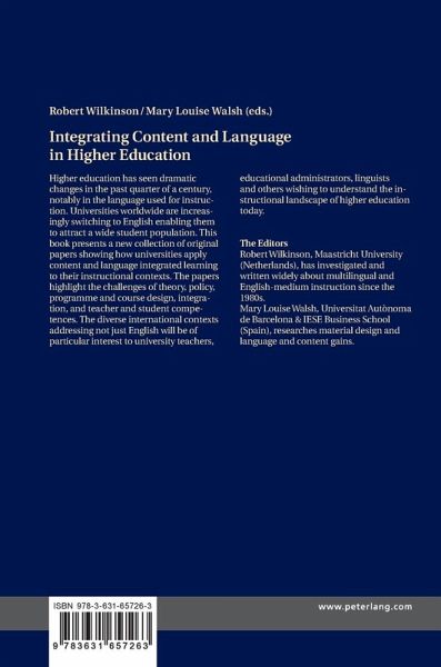 Higher education has seen dramatic changes in the past quarter of a century, notably in the language used for instruction. Universities worldwide are increasingly switching to English enabling them to attract a wide student population. This book presents a new collection of original papers showing how universities apply content and language integrated learning to their instructional contexts. The papers highlight the challenges of theory, policy, programme and course design, integration, and teacher and student competences. The diverse international contexts addressing not just English will be of particular interest to university teachers, educational administrators, linguists and others wishing to understand the instructional landscape of higher education today.