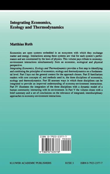 Integrating Economics, Ecology and Thermodynamics provides a first step in identifying and combining the principles of economics, ecology and thermodynamics on a fundamental level. Part I lays out the general context for the approach chosen. Part II familiarizes readers with core concepts of, and methods used in, the three disciplines of economics, ecology and thermodynamics. Part III assesses ways in which these disciplines can be integrated to provide an improved understanding of economy--environment interactions. Part IV illustrates the integration of the three disciplines with a dynamic model of a human community interacting with its environment. In Part V the volume closes with a brief summary and a set of conclusions on the relevance of integrated, interdisciplinary approaches to economy--environment interactions.