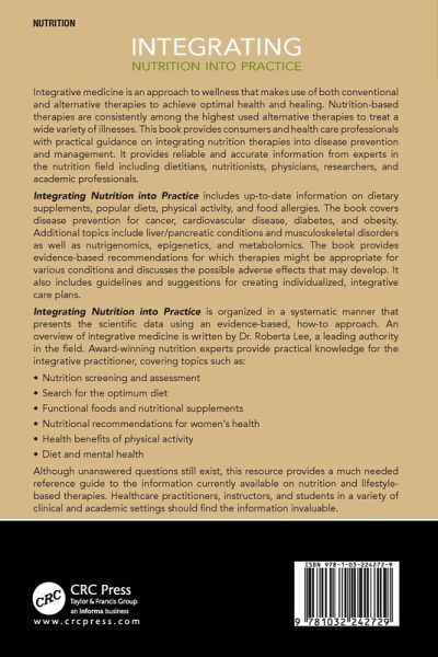 Integrative medicine is an approach to wellness that makes use of both conventional and alternative therapies to achieve optimal health and healing. Nutrition-based therapies are consistently among the highest used alternative therapies to treat a wide variety of illnesses. This book provides consumers and health care professionals with practical guidance on integrating nutrition therapies into disease prevention and management. It provides reliable and accurate information from experts in the nutrition field including dietitians, nutritionists, physicians, researchers, and academic professionals. Integrative Nutrition Therapy includes up-to-date information on dietary supplements, popular diets, physical activity, and food allergies. The book covers disease prevention for cancer, cardiovascular disease, diabetes, and obesity. Additional topics include liver/pancreatic conditions and musculoskeletal disorders as well as nutrigenomics, epigenetics, and metabolomics. The book provides evidence-based recommendations for which therapies might be appropriate for various conditions and discusses the possible adverse effects that may develop. It also includes guidelines and suggestions for creating individualized, integrative care plans. Integrative Nutrition Therapy is organized in a systematic manner that presents the scientific data using an evidence-based, how-to approach. An overview of integrative medicine is written by Dr. Roberta Lee, a leading authority in the field. Award-winning nutrition experts provide practical knowledge for the integrative practitioner, covering topics such as: Nutrition screening and assessment Search for the optimum diet Functional foods and nutritional supplements Nutritional recommendations for women's health Health benefits of physical activity Diet and mental health Although unanswered questions still exist, this resource gives you a much-needed guide to the information currently available on nutrition and lifestyle-based therapies.