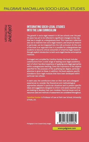 Themes, Challenges and Overcoming Barriers; C.Hunter.- PART I: DEVELOPING MODULES AND ASSESSMENT.- Socio-legal Studies Module: the Bristol Experience; M.McDermont, B.Morgan & D.Cowan.- Applied Research Methods and Law Reform: the Leeds Experience; P.Vincent-Jones& S.Blandy.- Innovations in Assessment: Family Law at Sheffield; P.Russell.- PART II: SOCIO-LEGAL STUDIES IN THE FOUNDATION SUBJECTS.- Property Law and Equity; R.Auchmuty.- Contract Law; L.Mulcahy & S.Wheeler.- Tort Law; K.Devine.- Public Law; S.Halliday.- Criminal Law; M.Weait.- EU Law; C.O'Brien.
