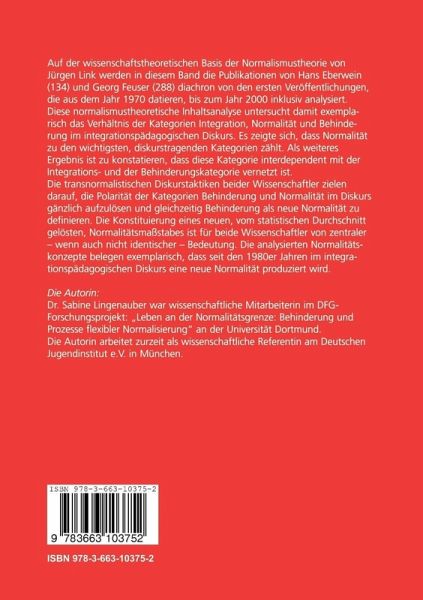 Normalität ist neben Behinderung und Integration die bedeutsamste Kategorie des integrationspädagogischen Diskurses. Anhand einer exemplarischen Analyse der Werke von Eberwein und Feuser wird aufgezeigt, wie im Diskurs die Polarität der Kategorien Behinderung und Normalität aufgelöst und gleichzeitig Behinderung als neue Normalität produziert wird.