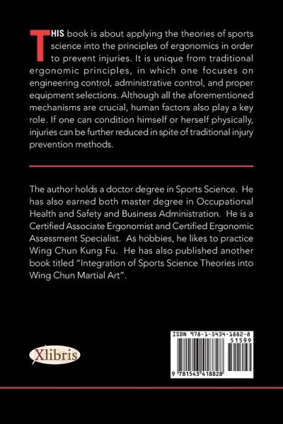 This book is about applying the theories of sports science into the principles of ergonomics in order to prevent injuries. It is unique from traditional ergonomic principles, in which one focuses on engineering control, administrative control, and proper equipment selections. Although all the aforementioned mechanisms are crucial, human factors also play a key role. If one can condition himself or herself physically, injuries can be further reduced in spite of traditional injury prevention methods.