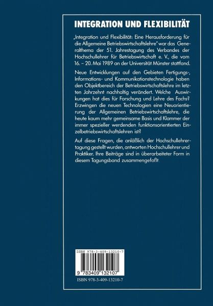Flexibilität und ihre Bedeutung für die Betriebspolitik.- Integration und Flexibilität - Unternehmensführung in unserer Zeit.- Die Informationstechnik und unternehmensübergreifende Logistik.- Moderne Produktionstechnik - Aufgabe und Herausforderung für die Betriebswirtschaft.- Podiumsdiskussion "Erwartungen an eine Allgemeine Betriebswirtschaftslehre aus der Sicht von Forschung und Lehre".- Arbeitsorganisation und Mitarbeiterqualifikation beim Einsatz moderner Informations- und Kommunikationstechniken.- Integrierte und flexible Unternehmungsführung durch computergestütztes Controlling.- Unternehmensdatenmodell (UDM): Verbindung von Allgemeiner BWL und integrierter Informationsverarbeitung.- Rationalisierung, Flexibilisierung und Mechatronisierung der Produktion in japanischen Unternehmen.- Dienstleistungsorientiertes Marketing - Antwort auf die Herausforderung durch neue Technologien.- Integrations- und Flexibilitätswirkungen neuer Umweltschutztechnologien.- Personalkapazitätsplanung und Arbeitsflexibilisierung.- Investitionsrechnung für Informations- und Kommunikationssysteme auf der Grundlage von Preis-Leistungs-Modellen.- Chancen und Risiken moderner Informationstechnologien für die Akteure auf den Finanzmärkten.- Klassische Funktionenlehre und marktorientierte Führung - Integrationsperspektiven aus der Sicht des Marketing.- Management und Informatik als Gegenstand der Allgemeinen Betriebswirtschaftslehre.- Das Unternehmen als Expertensystem.- Schlußwort.