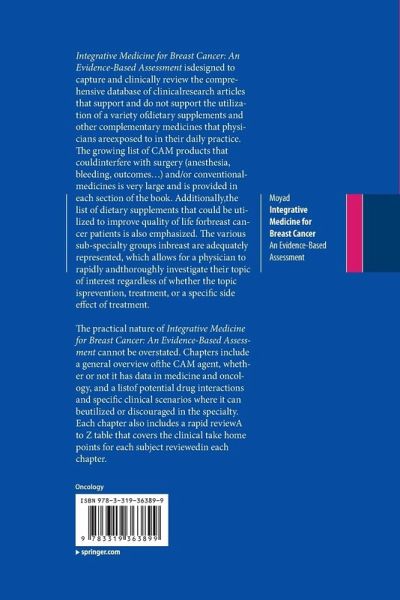 The practical nature of Integrative Medicine for Breast Cancer: An Evidence-Based Assessment cannot beoverstated. Chapters include a general overview of the CAM agent, whether or not it has data in medicine and oncology, and a list of potential drug interactions and specific clinical scenarios where it can be utilized or discouraged in the specialty. Thus, this book will become the gold standard evidence based text for use in teaching, not only for the students interested in oncology and breast cancer, but for all current oncology health providers.
