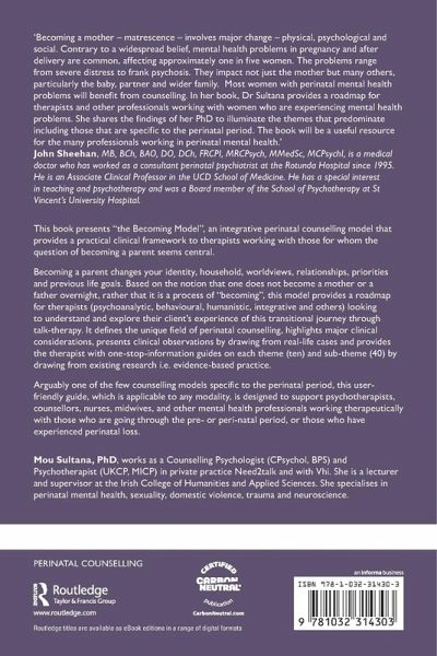 Arguably one of the few counselling models specific to the perinatal period, this user-friendly guide, which is applicable to any modality, is designed to support psychotherapists, counsellors, nurses, midwives, and other mental health professionals working therapeutically with those who are going through the pre- or peri-natal period, or those who have experienced perinatal loss.