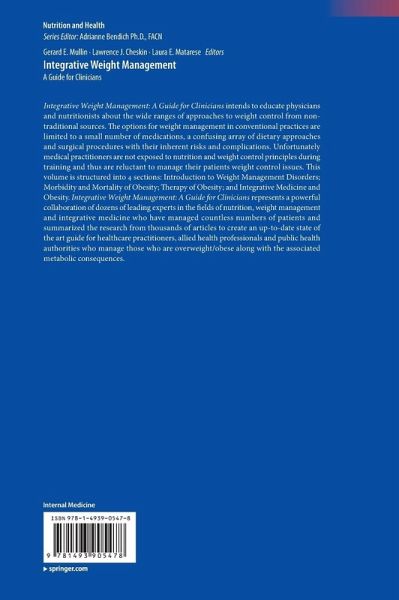 Integrative Weight Management: A Guide for Clinicians intends to educate physicians and nutritionists about the wide ranges of approaches to weight control from non-traditional sources. The options for weight management in conventional practices are limited to a small number of medications, a confusing array of dietary approaches and surgical procedures with their inherent risks and complications. Unfortunately medical practitioners are not exposed to nutrition and weight control principles during training and thus are reluctant to manage their patients weight control issues. This volume is structured into 4 sections: Introduction to Weight Management Disorders; Morbidity and Mortality of Obesity; Therapy of Obesity; and Integrative Medicine and Obesity. Integrative Weight Management: A Guide for Clinicians represents a powerful collaboration of dozens of leading experts in the fields of nutrition, weight management and integrative medicine who have managed countless numbers of patients and summarized the research from thousands of articles to create an up-to- date state of the art guide for healthcare practitioners, allied health professionals and public health authorities who manage those who are overweight/obese along with the associated metabolic consequences.