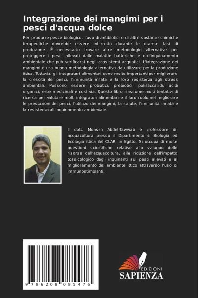 Per produrre pesce biologico, l'uso di antibiotici e di altre sostanze chimiche terapeutiche dovrebbe essere interrotto durante le diverse fasi di produzione. È necessario trovare altre metodologie alternative per proteggere i pesci allevati dalle malattie batteriche e dall'inquinamento ambientale che può verificarsi negli ecosistemi acquatici. L'integrazione dei mangimi è una buona metodologia alternativa da utilizzare per la produzione ittica. Tuttavia, gli integratori alimentari sono molto importanti per migliorare la crescita dei pesci, l'immunità innata e la loro resistenza agli stress ambientali. Possono essere probiotici, prebiotici, polisaccaridi, acidi organici, erbe medicinali e così via. Questo libro riassume molti tentativi di ricerca per valutare molti integratori alimentari e il loro ruolo nel migliorare le prestazioni dei pesci, l'utilizzo dei mangimi, la salute, l'immunità innata e la resistenza all'inquinamento ambientale.