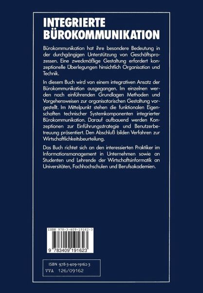 Biirokommunikation wurde lange Zeit mit Textverarbeitung, elektronischer Post und den Telekommunikationsdiensten der Post gleichgesetzt. In vielen Untemehmen hat sich gezeigt, daB der isolierte Einsatz von Biirokommunikationsfunktionen nicht im mer die gewiinschten Rationalisierungserfolge erbrachte. In den letzten Jahren wird zunehmend betont, daB Anwendungen der Biirokommunikation in integrativer Weise zur durchgangigen Unterstiitzung von Geschaftsprozessen im Sinne einer integrierten Vorgangsbearbeitung im Untemehmen eingesetzt werden sollen. Das vorliegende Buch geht davon aus, daB mit Biirokommunikation die zielorientierte Bereitstellung von Biiroprodukten in Biiroprozessen unterstiitzt wird. Vor dem Hintergrund dieses Verstandnisses wird das Phanomen integrierter Biirokommuni kation in vier Teilbereiche gegliedert. Die Basis bilden die organisatorische Analyse und Gestaltung. 1m Mittelpunkt stehen technische Systernkomponenten. Flankiert werden die Organisation und Technik von konzeptionellen Uberlegungen zur Ein flihrungsstrategie und Benutzerbetreuung sowie von Verfahren zur Wirtschaftlich keitsbeurteilung. In den einzelnen Kapiteln findet der Leser eine fundierte und aktuelle Darstellung von Methoden, Vorgehensweisen und funktionaler Eigenschaften der Technik. Ins besondere bei den technischen Systernkomponenten werden auch konzeptionelle Grundlagen, intemationale Standards (z. B. ODAjODIF, ED IFACT, X. 400) und zu kunftsweisende Anwendungen aus dem Forschungsumfeld prasentiert. Darnit hat der Leser die Moglichkeit, sich einen fundierten Uberblick iiber dieses komplexe und selten klar urnrissene Anwendungsfeld modemer Informations-und Kommunikati onstechnik zu verschaffen. Dies gilt gleichermaBen flir den interessierten Praktiker im Untemehmen wie flir den Studierenden und Lehrenden der Wirtschaftsinforma tik. Einerseits kann der Praktiker konkrete Hinweise flir die LOsung praktischer Pro bleme bekommen, andererseits findet der wissenschaftlich Interessierte iiber die Li teraturangaben im Text eine niitzliche Ausgangsbasis flir die individuelle Vertiefung vor.
