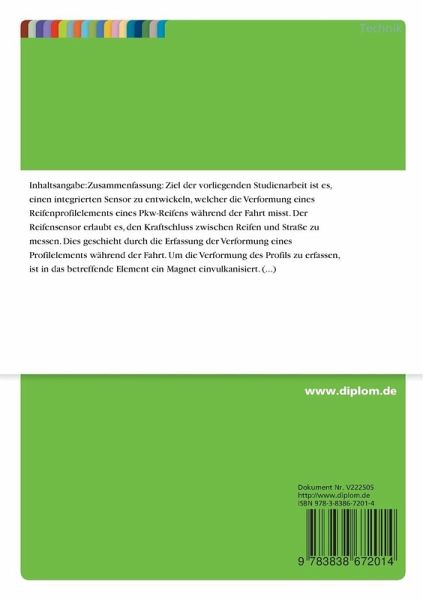 Ziel der vorliegenden Studienarbeit ist es, einen integrierten Sensor zu entwickeln, welcher die Verformung eines Reifenprofilelements eines Pkw-Reifens während der Fahrt misst. Der Reifensensor erlaubt es, den Kraftschluss zwischen Reifen und Straße zu messen. Dies geschieht durch die Erfassung der Verformung eines Profilelements während der Fahrt. Um die Verformung des Profils zu erfassen, ist in das betreffende Element ein Magnet einvulkanisiert. Die Lageänderung des Magneten ruft eine Änderung der magnetischen Flussdichte B in den MAGFETs auf dem Sensorchip hervor, der sich unmittelbar unter dem Magneten, d.h. etwas tiefer im Laufstreifen des Reifens befindet. Die Flussdichteänderung wird gemessen und drückt sich in einer Spannungsänderung aus. Aufgrund der Spannungsänderung läßt sich die neue Position des Magneten berechnen und Rückschlüsse auf den Kraftschluß treffen. Die zur Messung der Reifenverformung notwendigen MAGFET-Paare sind durch spezielle Transistoren in CMOS-Technologie aufgebaut. Die CMOS-MAGFET-Paare besitzen eine geringe Verlustleistung und eine hohe Empfindlichkeit.