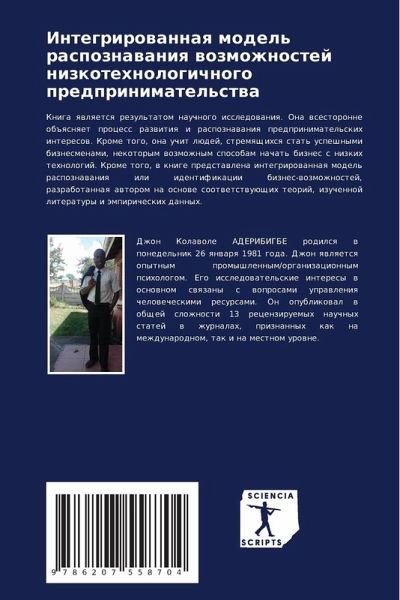 Kniga qwlqetsq rezul'tatom nauchnogo issledowaniq. Ona wsestoronne ob#qsnqet process razwitiq i raspoznawaniq predprinimatel'skih interesow. Krome togo, ona uchit lüdej, stremqschihsq stat' uspeshnymi biznesmenami, nekotorym wozmozhnym sposobam nachat' biznes s nizkih tehnologij. Krome togo, w knige predstawlena integrirowannaq model' raspoznawaniq ili identifikacii biznes-wozmozhnostej, razrabotannaq awtorom na osnowe sootwetstwuüschih teorij, izuchennoj literatury i ämpiricheskih dannyh.