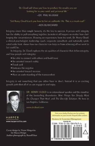 Explores the six qualities of character that define integrity. This title shows us how people with integrity: are able to connect with others and build trust; are oriented toward reality; finish well; embrace the negative; are oriented toward increase; have an understanding of the transcendent; and, success is not related to only talent or brains.