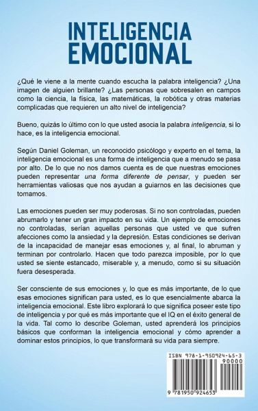 Si usted desea aumentar lo que los expertos llaman el predictor número 1 de éxito profesional y personal, entonces siga leyendo... ¿Usted quiere saber cómo funciona EQ y quién lo tiene? ¿Usted quiere saber si la tiene? ¿Le gustaría saber cómo aumentar su EQ para que usted pueda experimentar el increíble impacto que puede tener en su vida? Si es así, entonces usted se encuentra en el lugar correcto. Verá, crear y mantener buenas relaciones y ser más efectivo no tiene por qué ser difícil. Incluso si usted ha leído innumerables libros sobre comunicación y éxito que no funcionaron. De hecho, es más fácil de lo que usted cree. Un informe de la Universidad de Yale señaló en un estudio que las parejas con niveles más altos de inteligencia emocional tenían relaciones más felices. En otro estudio los investigadores señalaron que las personas con mejores puntajes en las pruebas de EQ tenían salarios más altos y también recibían más promociones. Lo que significa que usted puede obtener más éxito profesional y personal sin tener necesariamente un alto coeficiente intelectual o IQ. Aquí encontrará una pequeña fracción de lo que usted descubrirá: Los 5 componentes de la inteligencia emocional y cómo mejorar cada uno de ellos. La verdad sobre por qué la inteligencia emocional podría ser más importante que el coeficiente intelectual. Las 2 cosas que usted debe poseer para ser un líder eficaz y resolver conflictos rápidamente. El primer error que cometen las personas que les impide resolver problemas y 8 preguntas que lo ayudarán a evitar este error. Por qué reprimir sus emociones es un error fatal y 17 formas mejores de controlar sus emociones Cómo finalmente liberarse de las opiniones y juicios de otras personas. 7 cosas que usted debe dejar de hacerse a sí mismo ahora mismo, si quiere tener un alto EQ o coeficiente emocional 6 estrategias a prueba de balas para manejar las emociones de otras personas para hacerlos sentir bien con usted Una técnica sorprendente que le ayudará a superar los pensamientos negativos sin utilizar afirmaciones. Cómo mejorar sus habilidades sociales y 4 formas simples para incrementar su carisma. ¡Y mucho, mucho más! Tómese un segundo para imaginar cómo se sentirá una vez que usted logre sus sueños y cómo reaccionarán su familia y amigos cuando vean la persona en la que se ha convertido. Incluso si usted no está acostumbrado a influir en las personas y a ser efectivo, puede experimentar el éxito profesional y personal cuando aumente su inteligencia emocional. ¡Compre este libro ahora para saber más sobre inteligencia emocional!