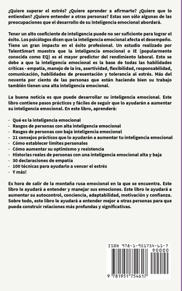 ¿Quiere superar el estrés? ¿Quiere aprender a afirmarte? ¿Quiere que lo entiendan? ¿Quiere entender a otras personas? Estas son sólo algunas de las preocupaciones que el desarrollo de su inteligencia emocional abordará. Tener un alto coeficiente de inteligencia puede no ser suficiente para lograr el éxito. Los psicólogos dicen que la inteligencia emocional afecta el desempeño. Tiene un gran impacto en el éxito profesional. Un estudio realizado por TalentSmart muestra que la inteligencia emocional o IE (popularmente conocida como EQ) es el mayor predictor del rendimiento laboral. Esto se debe a que la inteligencia emocional es la base de todas las habilidades críticas - empatía, manejo de la ira, asertividad, flexibilidad, responsabilidad, comunicación, habilidades de presentación y tolerancia al estrés. Más del noventa por ciento de las personas que están haciendo bien su trabajo también tienen una alta inteligencia emocional. La buena noticia es que puede desarrollar su inteligencia emocional. Este libro contiene pasos prácticos y fáciles de seguir que lo ayudarán a aumentar su inteligencia emocional. En este libro, aprenderá: Qué es la inteligencia emocional Rasgos de personas con alta inteligencia emocional Rasgos de personas con baja inteligencia emocional 21 consejos prácticos que lo ayudarán a aumentar tu inteligencia emocional Cómo establecer límites personales Cómo conocerse a sí mismo profundamente Cómo aumentar su optimismo y resistencia Historias reales de personas con una inteligencia emocional alta y baja 30 declaraciones de empatía 100 técnicas para ayudarlo a vencer el estrés Y más! Es hora de salir de la montaña rusa emocional en la que se encuentra. Este libro le ayudará a entender y manejar sus emociones. Este libro le ayudará a aumentar su autocontrol, conciencia, adaptabilidad, motivación y confianza. Sobre todo, este libro le ayudará a entender mejor a otras personas para que pueda construir relaciones más profundas y significativas. Agarre este libro ahora mismo y cambie su vida!