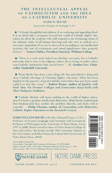 Mark W. Roche presents a clear, precise, and positive view of the challenge and promise of a Catholic university. Roche makes visible the ideal of a Catholic university and illuminates in original ways the diverse, but interconnected, dimensions of Catholic identity. Roche's vision of the distinct intellectual mission of a Catholic university will appeal to Catholics as well as to persons who are not Catholic but who may recognize through this essay the unexpected allure of a Catholic university.