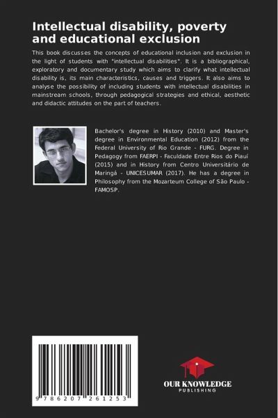 This book discusses the concepts of educational inclusion and exclusion in the light of students with "intellectual disabilities". It is a bibliographical, exploratory and documentary study which aims to clarify what intellectual disability is, its main characteristics, causes and triggers. It also aims to analyse the possibility of including students with intellectual disabilities in mainstream schools, through pedagogical strategies and ethical, aesthetic and didactic attitudes on the part of teachers.
