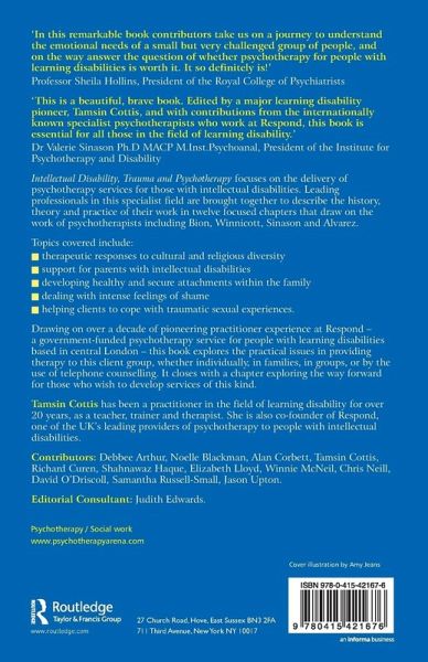 Alvarez Foreword. Cottis Introduction. O'Driscoll Psychotherapy and Intellectual Disability: A Historical View. Upton When Words Are Not Enough: Creative Therapeutic Approaches. Corbett Words as a Second Language: The Psychotherapeutic Challenge of Severe Intellectual Disability. Lloyd Speaking Through the Skin: The Significance of Shame. Cottis Love Hurts: The Emotional Impact of Intellectual Disability and Sexual Abuse on a Family. Curen 'Can They See in the Door?': Issues in the Assessment and Treatment of Sex Offenders Who Have Intellectual Disabilities. Cottis Neill Going on Down the Line: Working with Parents Who Have Intellectual Disabilities. Haque Differences Differences Differences: Working with Ethnic Cultural and Religious Diversity. Blackman Therapy for Life and Death: A Focus on the Respond Elders Project . Arthur McNeil Small In One Ear: The Practice and Process of Telephone Counselling. Cottis O'Driscoll Outside In: The Effects of Trauma on Organisations. Cottis Life Support or Intensive Care?: Endings and Outcomes in Psychotherapy for People with Intellectual Disabilities. Glossary.