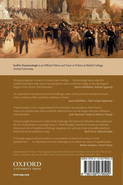 * Introduction: Revisiting the Intellectual Transformation of Nineteenth-Century France * 1: Between Republicanism and Positivism: Emile Littré and the Founding of The Third Republic * 2: Centralist Defender of the State: The Eclectic Republicanism of Charles Dupont-White * 3: From Democratic Advocate to Monarchist Critic of the Republic: The Ambiguous Republicanism of Etienne Vacherot * 4: A Republican Saint-Simonist: Eugène Pelletan and the Transformation of Nineteenth-Century Republicanism * 5: Neo-Kantian Moralist and Activist: Jules Barni and the Establishment of the Municipalist Republic * Conclusion: The Origins of the Third Republic Reconsidered