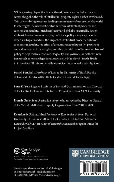 While growing disparities in wealth and income are well-documented across the globe, the role of intellectual property rights is often overlooked. This volume brings together leading commentators from around the world to interrogate the interrelationship between intellectual property and economic inequality. Interdisciplinary and globally oriented by design, the book features economists, legal scholars, policy analysts, and other experts. Chapters address the impact of intellectual property rights on economic inequality, the effect of economic inequality on the protection and enforcement of these rights, and the potential use of innovation law and policy to help reduce economic inequality. The volume also tackles timely issues like race and gender disparities and the North-South divide in innovation. This book is available as Open Access on Cambridge Core.