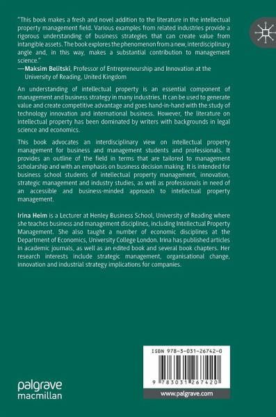 This book advocates an interdisciplinary view on intellectual property management for business and management students and professionals. It provides an outline of the field in terms that are tailored to management scholarship and with an emphasis on business decision making. It is intended for business school students of intellectual property management, innovation, strategic management and industry studies, as well as professionals in need of an accessible and business-minded approach to intellectual property management.