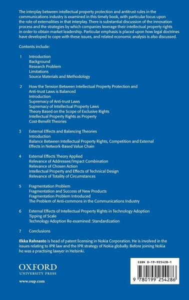 The interplay between intellectual property protection and antitrust rules in the communications industry is examined in this timely book, with particular focus upon the role of externalities in that interplay. There is substantial discussion of the innovation process and of how companies leverage their intellectual property rights in order to obtain market leadership. Particular emphasis is also placed upon how legal doctrines have developed to cope with these issues, and related economic analysis is also discussed.