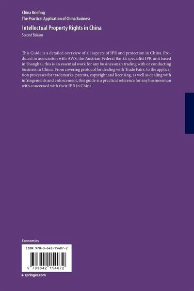 This updated second edition in a fast-moving field details all aspects of IPR and rights protection in China. Essential reading for traders, it has been produced in association with AWS, the Austrian Federal Bank's specialist IPR unit based in Shanghai.