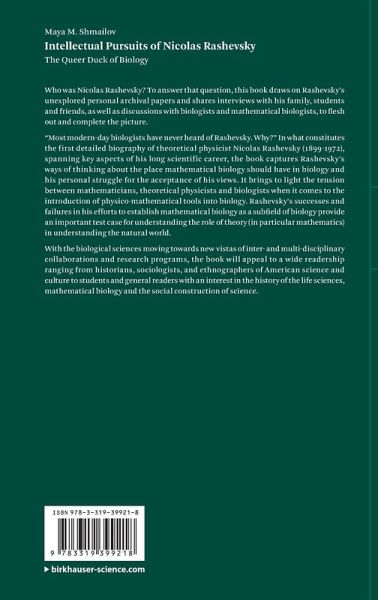 "Most modern-day biologists have never heard of Rashevsky. Why?" In what constitutes the first detailed biography of theoretical physicist Nicolas Rashevsky (1899-1972), spanning key aspects of his long scientific career, the book captures Rashevsky's ways of thinking about the place mathematical biology should have in biology and his personal struggle for the acceptance of his views. It brings to light the tension between mathematicians, theoretical physicists and biologists when it comes to the introduction of physico-mathematical tools into biology. Rashevsky's successes and failures in his efforts to establish mathematical biology as a subfield of biology provide an important test case for understanding the role of theory (in particular mathematics) in understanding the natural world.