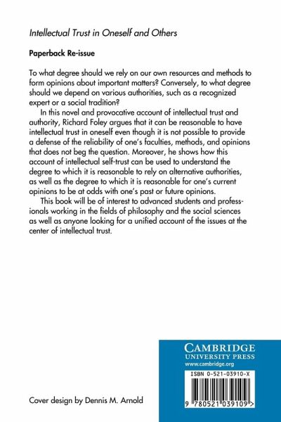 To what degree should we rely on our own resources and methods to form opinions about important matters? To what degree should we depend on various authorities, such as a recognized expert or a social tradition? In this provocative account of intellectual trust and authority, Richard Foley argues that it can be reasonable to have intellectual trust in oneself even though it is not possible to provide a defense of the reliability of one's faculties, methods, and opinions that does not beg the question. Moreover, he shows how this account of intellectual self-trust can be used to understand the degree to which it is reasonable to rely on alternative authorities. This book will be of interest to advanced students and professionals working in the fields of philosophy and the social sciences as well as anyone looking for a unified account of the issues at the center of intellectual trust.