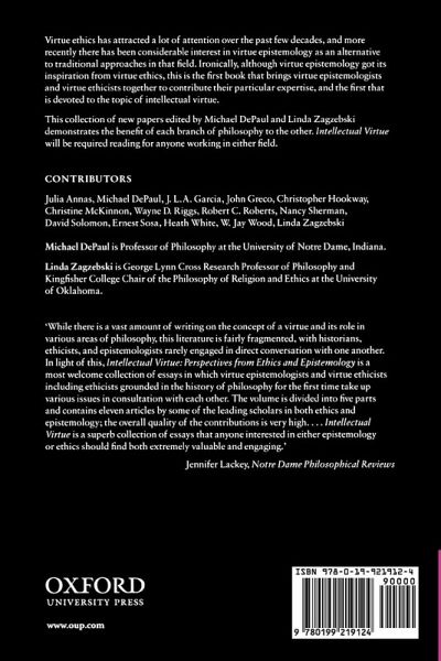 All new and right up to date, the papers collected here by Zagzebski and DePaul demonstrate the benefit of each branch of philosophy to the other. Intellectual Virtue will be required reading for anyone working in either field.