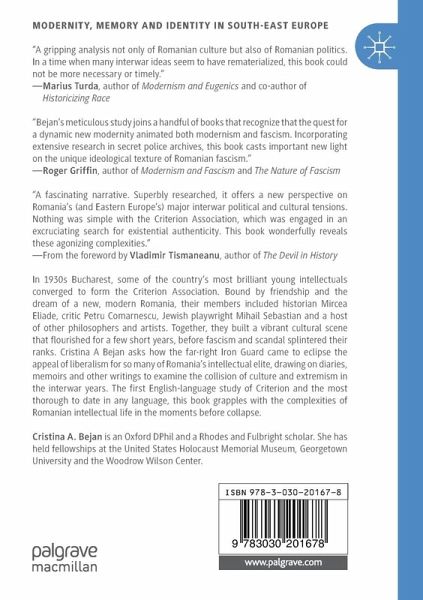 In 1930s Bucharest, some of the country's most brilliant young intellectuals converged to form the Criterion Association. Bound by friendship and the dream of a new, modern Romania, their members included historian Mircea Eliade, critic Petru Comarnescu, Jewish playwright Mihail Sebastian and a host of other philosophers and artists. Together, they built a vibrant cultural scene that flourished for a few short years, before fascism and scandal splintered their ranks. Cristina A. Bejan asks how the far-right Iron Guard came to eclipse the appeal of liberalism for so many of Romania's intellectual elite, drawing on diaries, memoirs and other writings to examine the collision of culture and extremism in the interwar years. The first English-language study of Criterion and the most thorough to date in any language, this book grapples with the complexities of Romanian intellectual life in the moments before collapse.