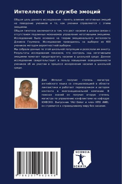Obschaq cel' dannogo issledowaniq - ponqt' wliqnie negatiwnyh ämocij na powedenie uchenikow i to, kak ucheniki sprawlqütsq s ätimi ämociqmi.Obschaq gipoteza zaklüchaetsq w tom, chto rost nasiliq w shkolah swqzan s otsutstwiem podlinnyh mehanizmow uprawleniq negatiwnymi ämociqmi. Issledowanie bylo osnowano na teorii ämocional'nogo intellekta Däniela Goulmana. Issledowanie prowodilos' na wyborke iz 400 uchenikow metodom weroqtnostnoj wyborki.My sobrali dannye po ätoj shkol'noj populqcii i razoslali im anketu. Rezul'taty issledowaniq pokazali, chto kontrol' nad negatiwnymi ämociqmi pomogaet predotwratit' nasilie w shkol'noj srede. Dannoe issledowanie swidetel'stwuet w pol'zu powysheniq oswedomlennosti uchenikow ob ih uchastii w processe iskoreneniq nasiliq w shkol'noj srede.