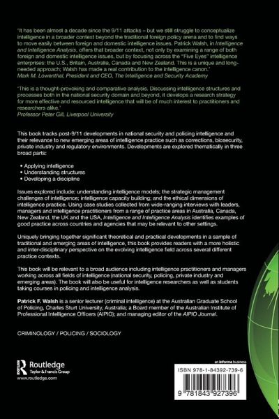 This book tracks post 9/11 developments in national security and policing intelligence and their relevance to new emerging areas of intelligence practice such as: corrections, biosecurity, private industry and regulatory environments.