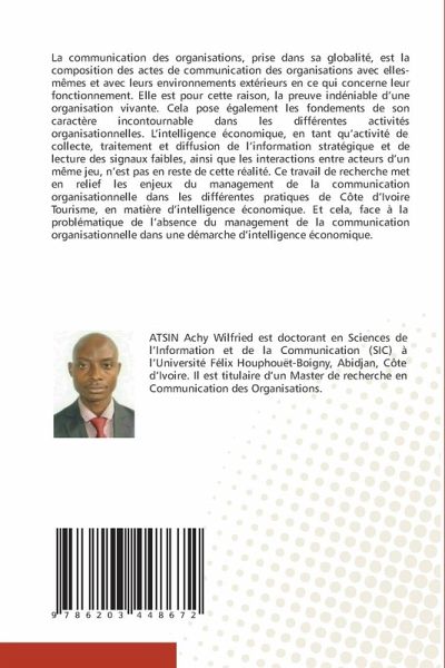 La communication des organisations, prise dans sa globalité, est la composition des actes de communication des organisations avec elles-mêmes et avec leurs environnements extérieurs en ce qui concerne leur fonctionnement. Elle est pour cette raison, la preuve indéniable d'une organisation vivante. Cela pose également les fondements de son caractère incontournable dans les différentes activités organisationnelles. L'intelligence économique, en tant qu'activité de collecte, traitement et diffusion de l'information stratégique et de lecture des signaux faibles, ainsi que les interactions entre acteurs d'un même jeu, n'est pas en reste de cette réalité. Ce travail de recherche met en relief les enjeux du management de la communication organisationnelle dans les différentes pratiques de Côte d'Ivoire Tourisme, en matière d'intelligence économique. Et cela, face à la problématique de l'absence du management de la communication organisationnelle dans une démarche d'intelligence économique.
